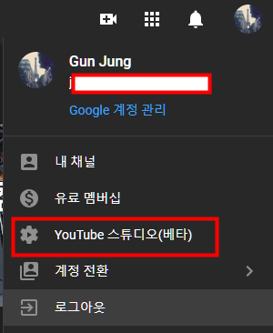 구글에 접속하시고, 로그인을 하신 상태에서 확인 할 수 있습니다. 로그인 된 상태에서 상단에 있는 프로필 버튼을 클릭해주세요. 버튼을 클릭하시면 첫 번재로 왼쪽 화면을 확인 할 수 있습니다. 여기서 유튜브(YoutTube 스튜디오)버튼을 클릭해주시면 오른쪽 화면으로 이동하게 되고, 다시 "수익창출"이라는 버튼을 클릭해주시면 됩니다.