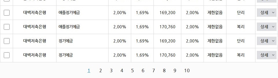 해당 사이트에서 정기예금 메뉴를 통해서 현재 날짜 기준이에 적금, 예금 등에 대한 은행, 상품, 세전 세후 이율 별로 테입르화 하여 제공하고 있습니다. 해당 자료를 통해서 저축은행 정기 예금 금리 비교해보세요.