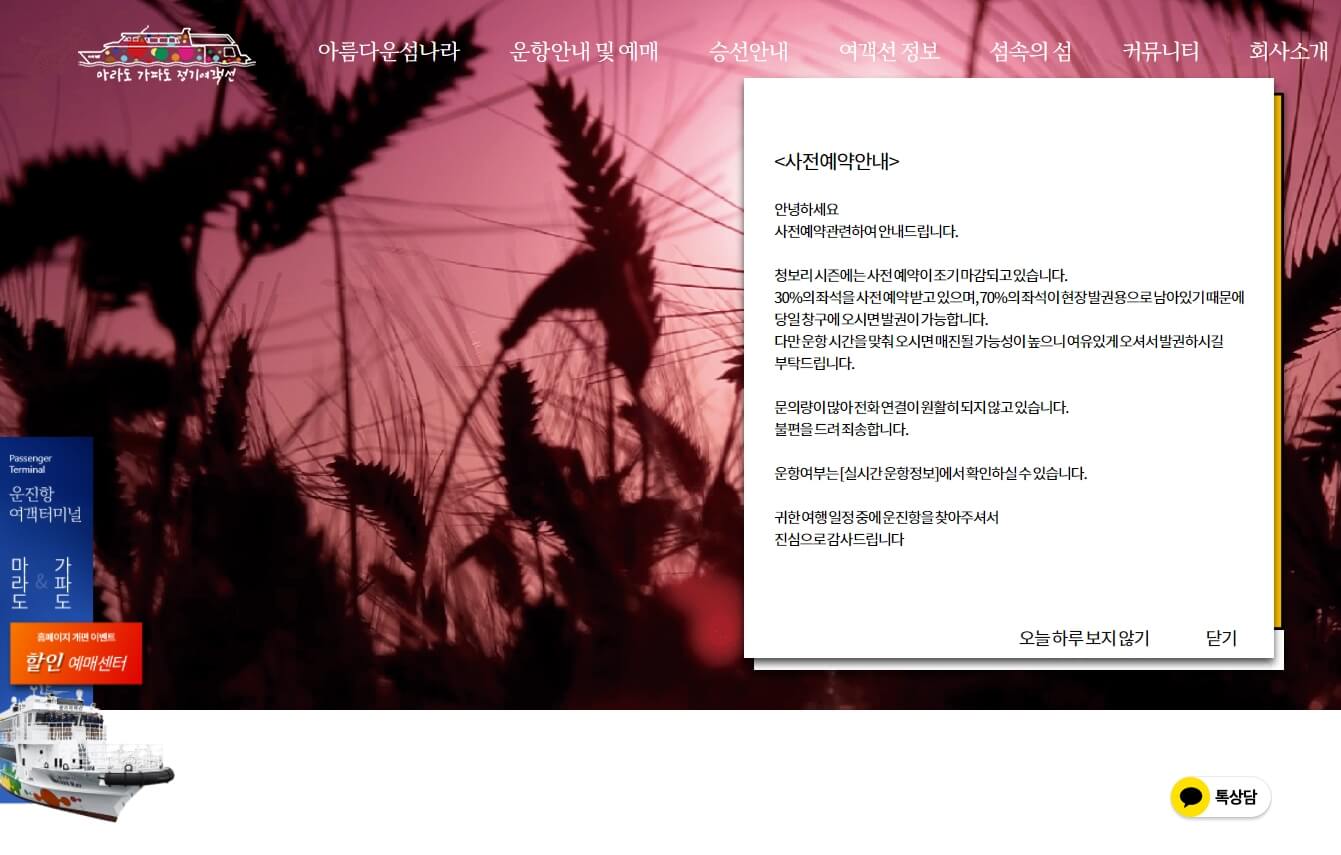 2. 가파도 배편 예약 공식 사이트