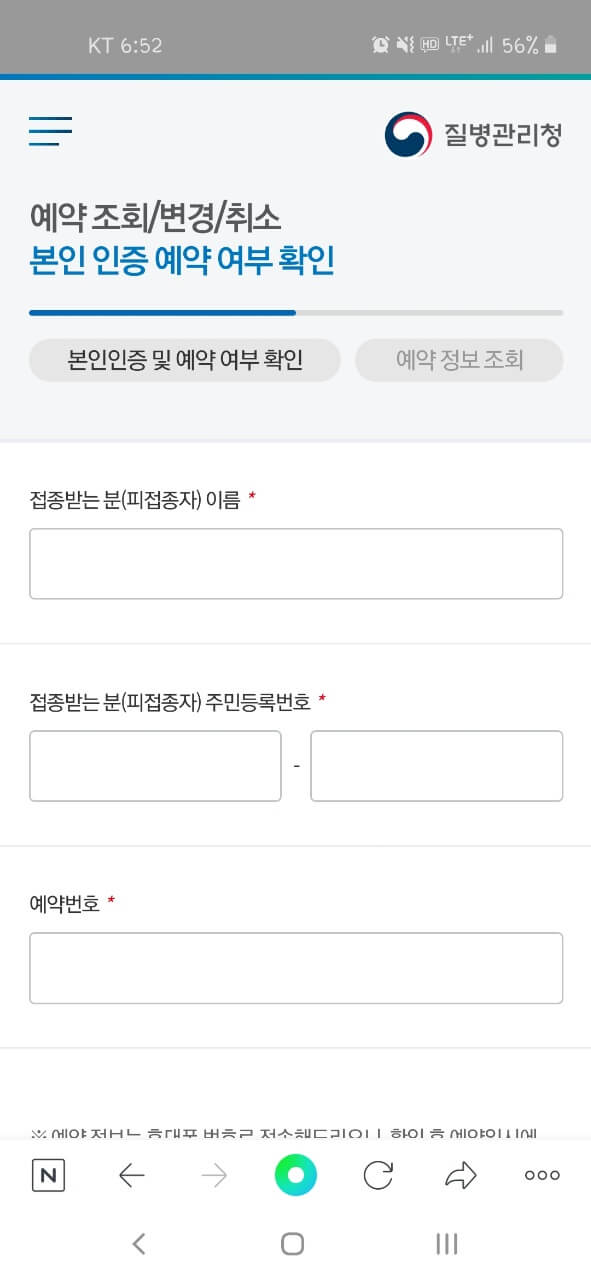 3. 본인 인증 코로나 백신 예약 여부 확인 정보를 입력해주세요.